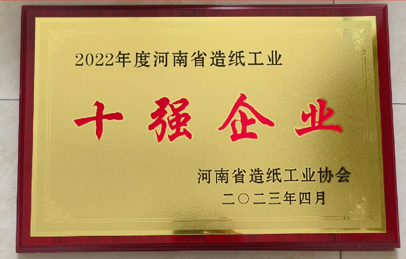 2022年度河南省造紙工業(yè)十強企業(yè)