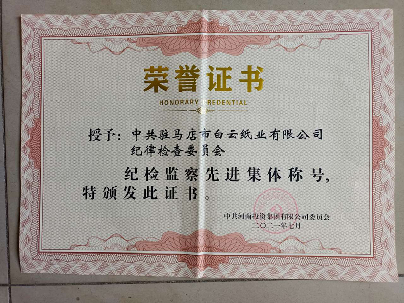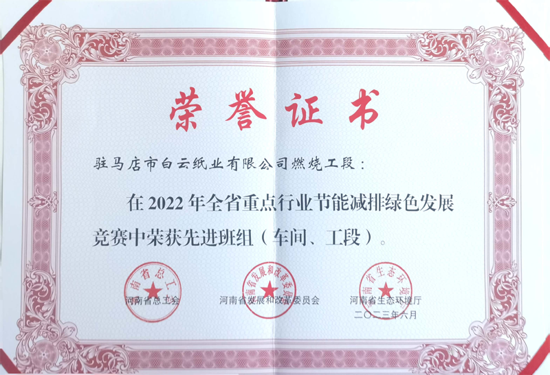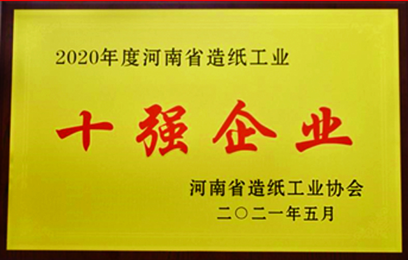 2021年白云紙業(yè)連續(xù)十六年獲河南省造紙工業(yè)十強企業(yè)